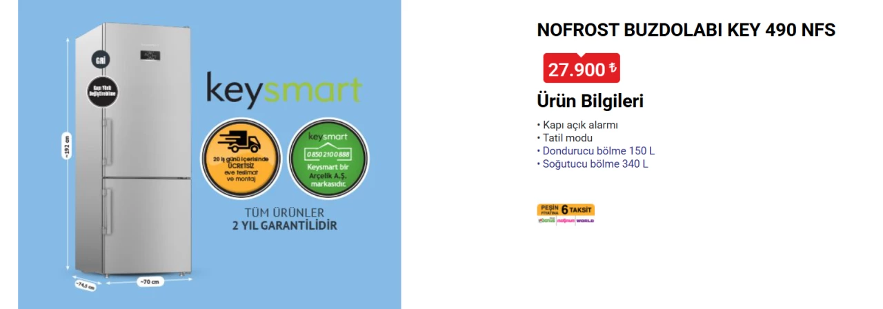 Keysmart NoFrost Buzdolabı KEY 490 NFS – 27.900 TL