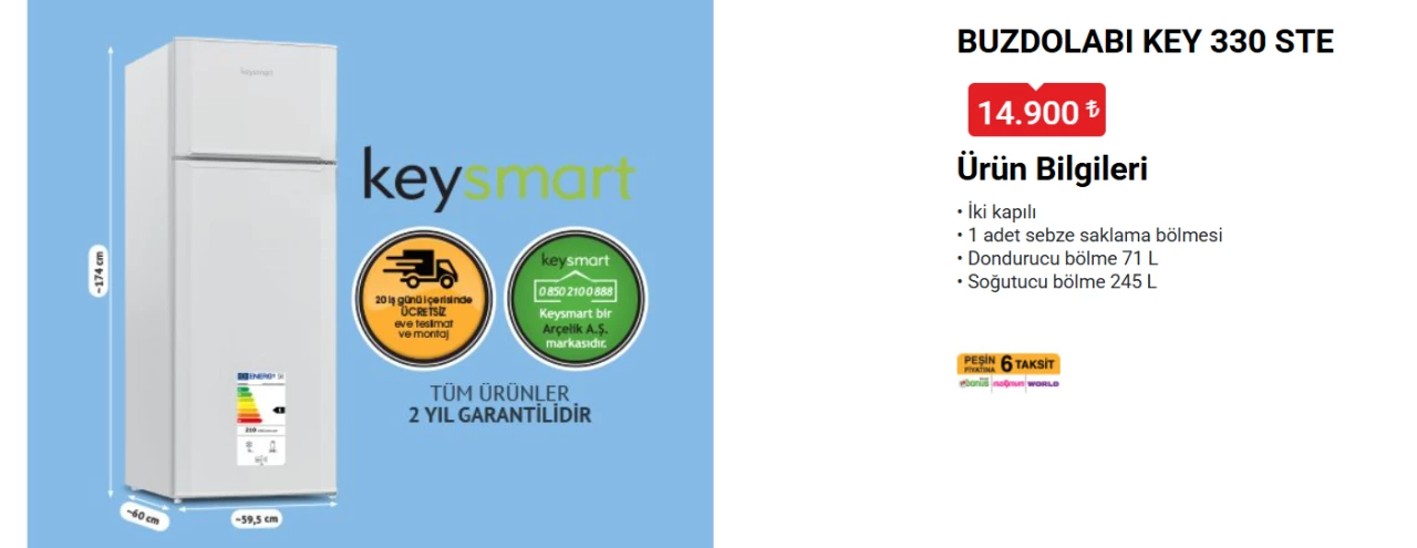 Keysmart Buzdolabı KEY 330 STE – 14.900 TL