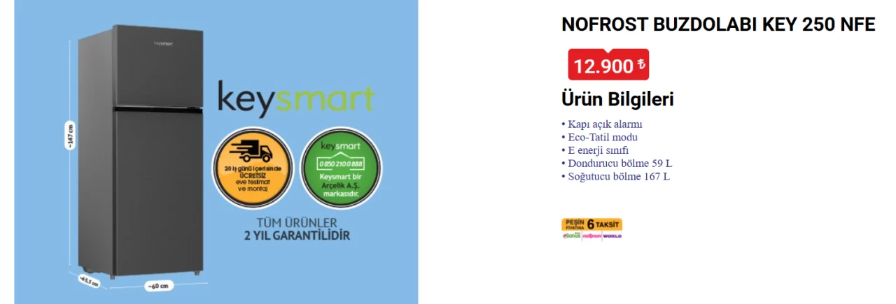 Keysmart NoFrost Buzdolabı KEY 250 NFE – 12.900 TL