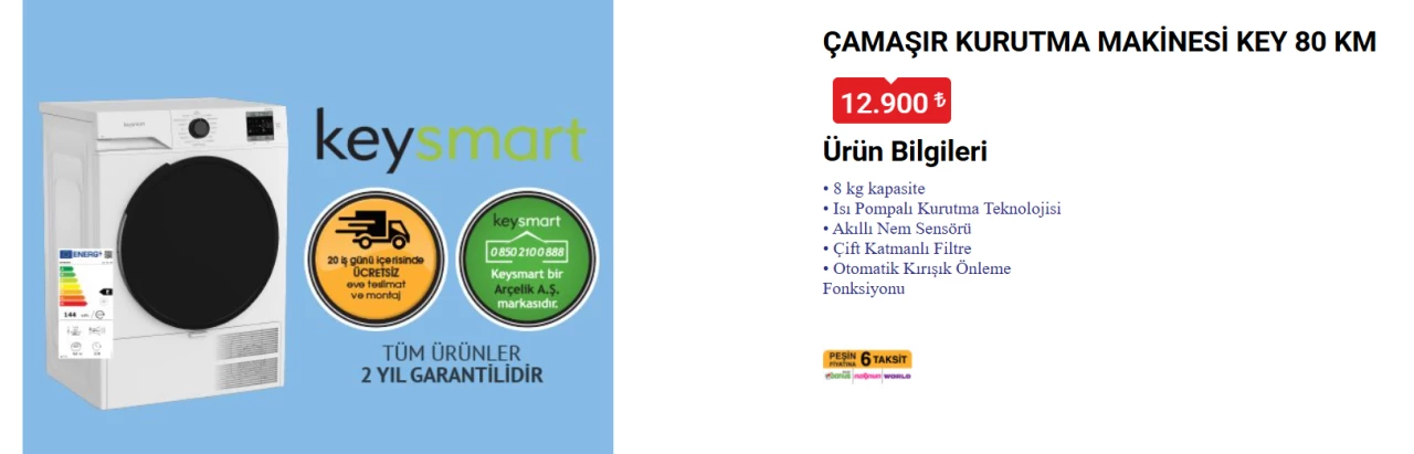 Keysmart Çamaşır Kurutma Makinesi KEY 80 KM – 12.900 TL
