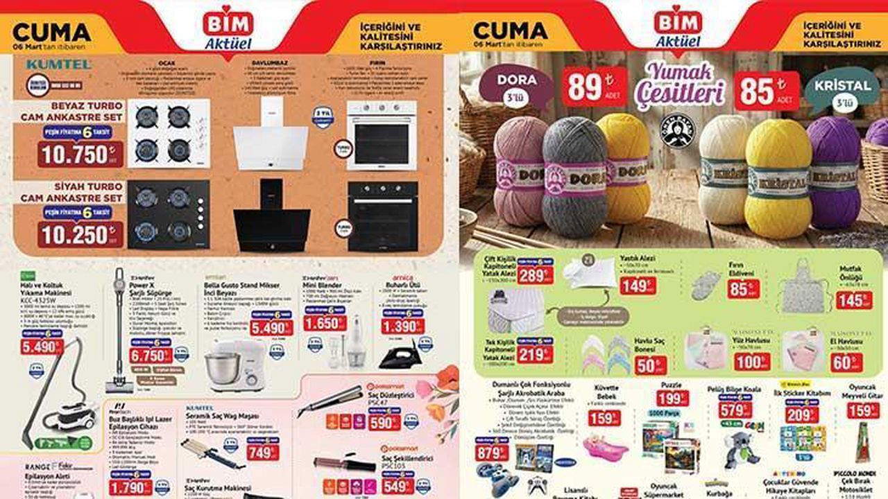 BİM’in 6 Mart 2026 Cuma aktüel kataloğundaki ürünler 6 Mart sabahı itibarıyla tüm mağazalarda satışa sunulacak. Sınırlı stok nedeniyle özellikle elektronik ürünler ve kişisel bakım cihazlarının erken saatlerde tükenebileceği belirtiliyor.