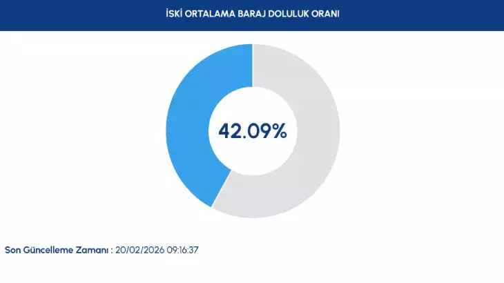 İSKİ tarafından açıklanan resmi verilere göre, 20 Şubat 2026 tarihi itibarıyla İstanbul genelindeki barajların ortalama doluluk oranı yüzde 42,09 olarak ölçüldü. Son haftalarda görülen yağışlara rağmen doluluk oranının kritik eşiklerin altında seyretmesi, su yönetimi ve tasarruf çağrılarını yeniden gündeme getirdi.
