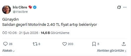 Motorin fiyatlarına ilişkin zam beklentisi sektör değerlendirmelerine dayanırken, nihai fiyatlar dağıtım şirketleri ve ilgili kurumların açıklamalarıyla kesinleşiyor. Güncel akaryakıt fiyatlarının resmi kaynaklardan takip edilmesi önem taşıyor.