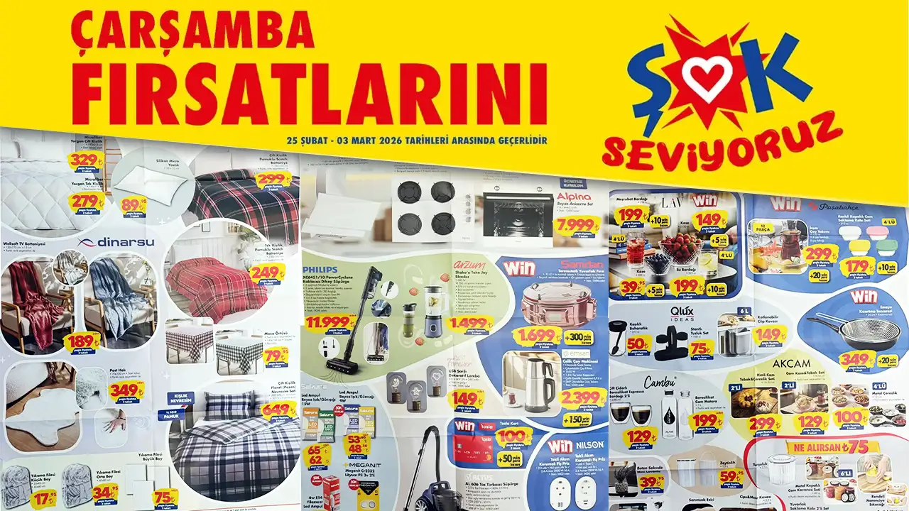 ŞOK’un 26 Şubat 2026 tarihli aktüel kataloğu, birçok kategoride geniş ürün gamı ve fiyat avantajlarıyla öne çıktı. Bu hafta özellikle beyaz eşya ve küçük ev aletleri tarafında agresif fiyatlama dikkat çekerken, züccaciye ve tekstil ürünlerinde de günlük kullanıma hitap eden seçenekler raflara geliyor. Kampanya kapsamında hem temel ihtiyaçlar hem de yüksek tutarlı ürünlerde cazip etiketler yer alıyor.