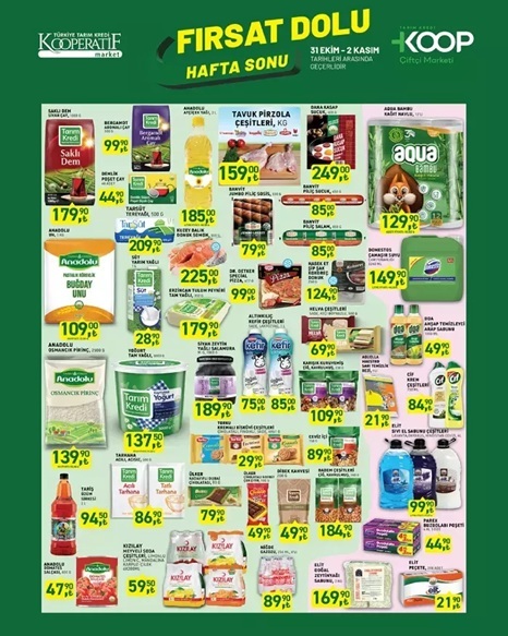 31 Ekim–2 Kasım 2025 tarihleri arasında geçerli olacak “Fırsat Dolu Hafta Sonu” kataloğunda, gıda, temizlik, kahvaltılık ve içecek ürünlerinde dikkat çekici fiyatlar yer alıyor.