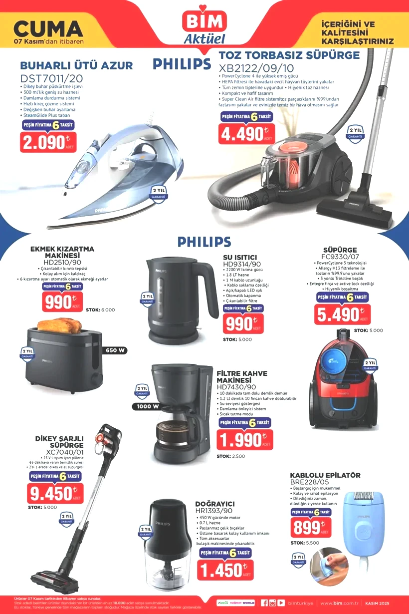 Bu ürünlerin yanı sıra Philips Epilatör (899 TL) ve Philips Doğrayıcı (1.450 TL) gibi kişisel bakım aletleri de katalogda yer alıyor.